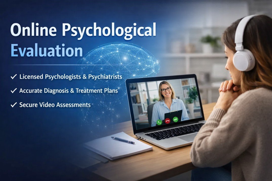 An online psychological evaluation follows the same clinical standards used in a traditional setting. A licensed psychologist or psychiatrist collects detailed information through structured interviews, validated assessment tools, and behavioral observations conducted over a secure video platform.
