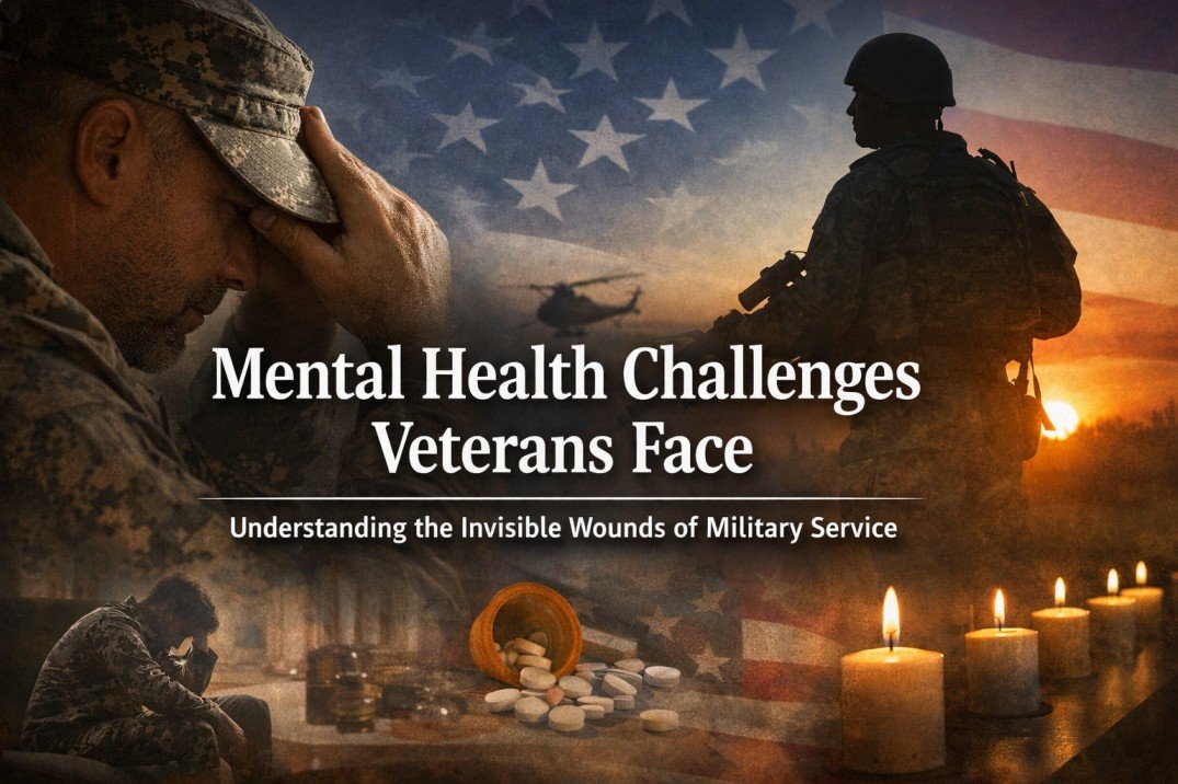 Veterans face higher rates of post-traumatic stress disorder, depression, anxiety disorders, substance use disorders, traumatic brain injury–related psychiatric symptoms, sleep disorders, trauma related to military sexual assault, and increased suicide risk. These conditions develop primarily from exposure to life-threatening events, repeated high-stress deployments, and the psychological demands of transitioning from military service to civilian life. Many of these injuries are invisible. They do not show on the outside, yet they affect thinking, emotions, behavior, relationships, and physical health. This article explains why these challenges occur, what they look like, and how effective treatment and support can help veterans reclaim stability and purpose.